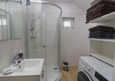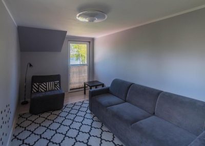Domek przeznaczony jest dla maksymalnie 8 osób. Dla gości oferujemy salon z kuchnią, dwie sypialnie, łazienkę oraz toaletę na piętrze. W łazience znajduje się przestronna kabina prysznicowa. Na wyposażeniu kuchni znajdują się wszystkie niezbędne do codziennego użytku akcesoria, pościel i ręczniki.